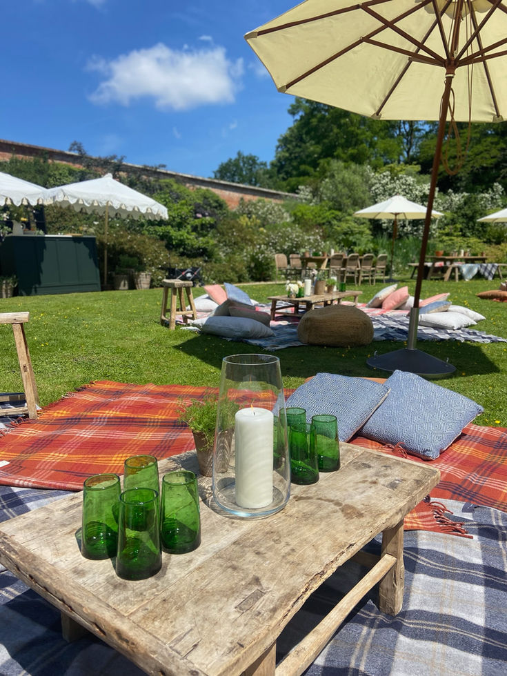 A bottle green water tumbler brought back from Morocco by us. Also available in a yellow/amber colour.